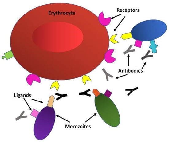 Targeting the blood cycle for vaccine development is attractive because this is the stage that causes most of the clinical symptoms of the disease (Figure 3). It is also when merozoites are periodically released into the bloodstream and therefore briefly free and accessible to the immune system and unsuccessful merozoites linger for even longer periods of time. Furthermore, egress and invasion result in the release of parasite proteins that can strengthen the immune response. The proteins involved in erythrocyte invasion are ideal targets for vaccine development because antibodies against them have been shown to interfere with this process [90,92]. Interference with the blood cycle would prevent disease and potentially also transmission.
