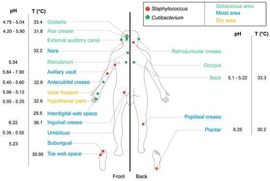 - Wilson, M. The Indigenous Microbiota of the Skin. In The Human Microbiota in Health and Disease: An Ecological and Community-Based Approach; Garland Science, Ed.; Taylor & Francis: Cambridge, UK, 2018; pp. 86–95. ISBN 978-0815345855. [Google Scholar]