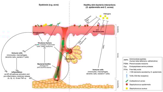 2. Interactions between Skin, Staphylococcus epidermidis and Cutibacterium acnes: A Possible Shift from Commensalism to Opportunistic Pathogenicity