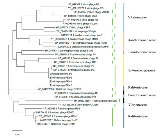 18] characterized the genome of two filamentous phages, ϕRSS1 and ϕRSM1, infecting the phytopathogen