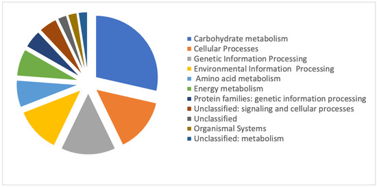 Representation of DRPs matching with a function in the Kyoto Encyclopedia of Genes and Genomes Pathway (KEGG) database. Each protein was classified in a KEGG category.