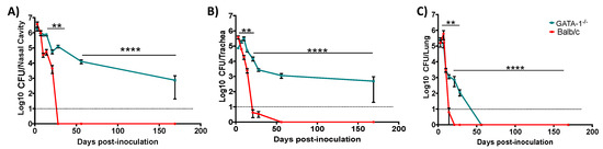 The following are available online at https://www.mdpi.com/2076-2607/8/11/1808/s1. Figure S1: Colonization levels in the lungs of Balb/c and DdblGATA-1 mice following infection with Bb and BbDbtrS.