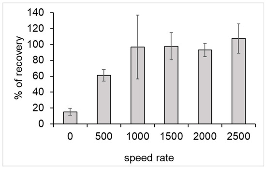 Percentage recovery of DNA in the speed rate agitation function. Error bars represent the standard deviation for n = 3.