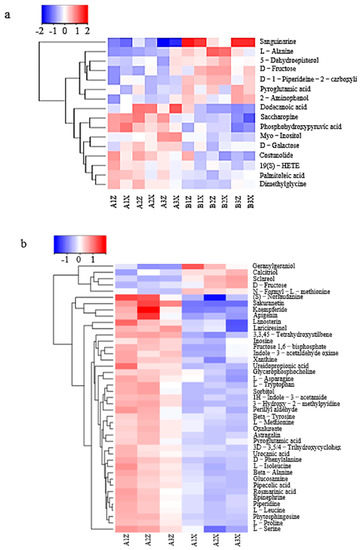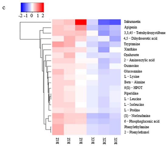 3.3.2. Differential-Metabolite-Cluster (Heatmap) Analysis of Litter