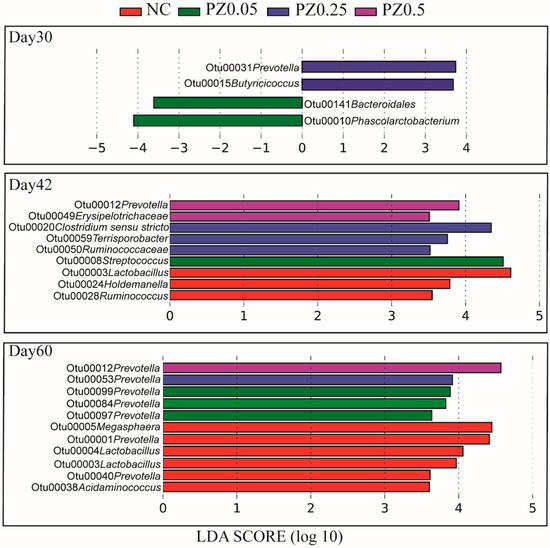 3.4. Linear Discriminant Analysis of Gut Bacteria