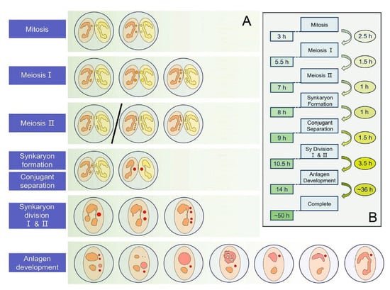 - Orias, E. Ciliate conjugation. In The Molecular Biology of Ciliated Protozoa; Gall, J.G., Ed.; Academic Press: Orlando, FL, USA, 1986; pp. 45–84. [Google Scholar]