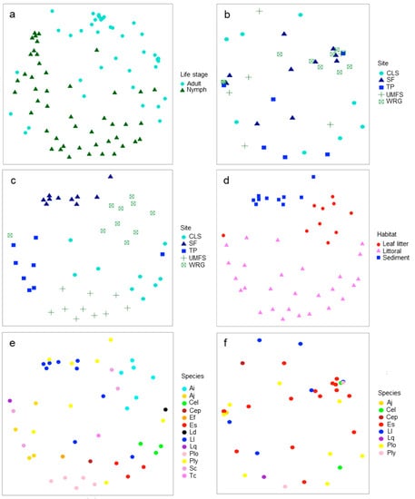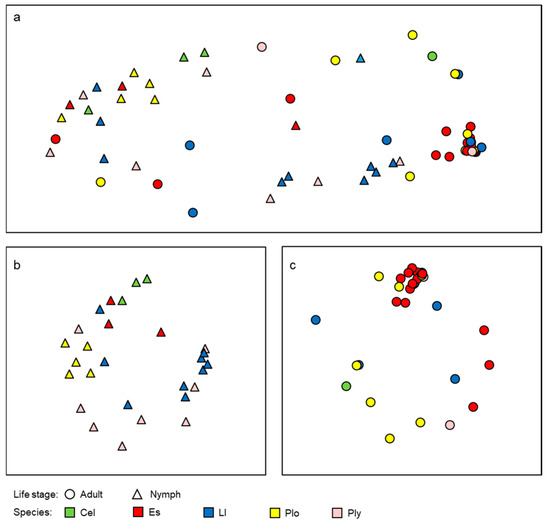 - Deb, R.; Nair, A.; Agashe, D. Host dietary specialization and neutral assembly shape gut bacterial communities of wild dragonflies. bioRxiv 2018, 357996. [Google Scholar] [CrossRef]