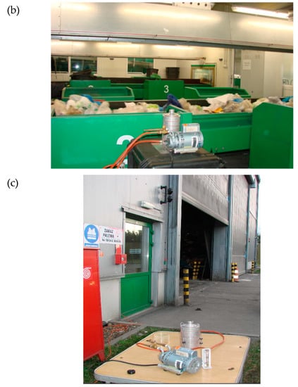 Bacterial air quality (BAQ) is an important problem because people inhale nearly 10 L of air a minute, which amounts to 15,000 L/day []. Waste sorting plants (WSPs) are a specific source of bacteria emission into the air. A WSP occurs during waste transport and processing at sorting stations. Rapid population growth and urbanization around the world has led to increased waste generation rates. In Poland and in many other countries, there are still no established legal limits for occupational exposure to bacteria aerosol in WSPs. However, this information is indispensable for the assessment of population exposure, as well as for the identification of the sources of bacterial aerosols (BAs) emission [].