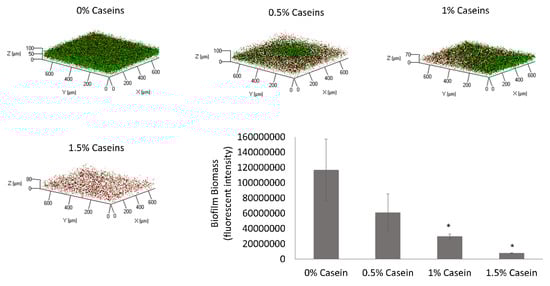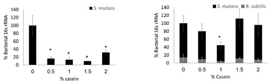 3.1. B. subtilis Enables Biofilm Formation by S. mutans in the Presence of Caseins