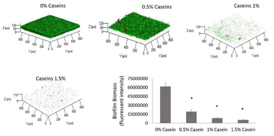 2.5. Characterization of Biofilm Structure by Confocal Laser Scanning Microscopy (CLSM)