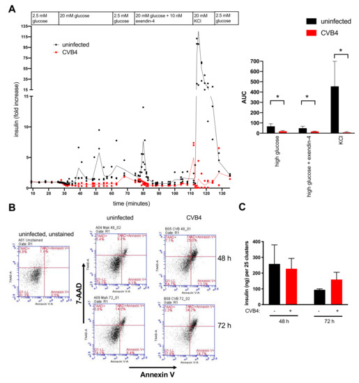 3.4. Perifusion Studies Showed Impaired Insulin Release by CVB4-Infected Cells