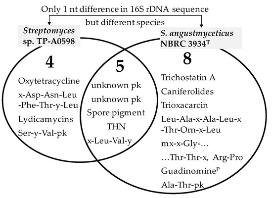 The following are available online at https://www.mdpi.com/2076-2607/8/3/370/s1, Table S1: Closest homolog of PKSs and NRPSs in the gene clusters of Streptomyces sp. TP-A0598, Table S2: Closest homolog of PKSs and NRPSs in the gene clusters of Streptomyces angustmyceticus NBRC 3934T.