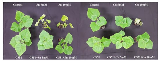 3.3. Promotion of Cucumber Plant Growth by P. Psychrotolerans CS51 under Heavy Metal Stress