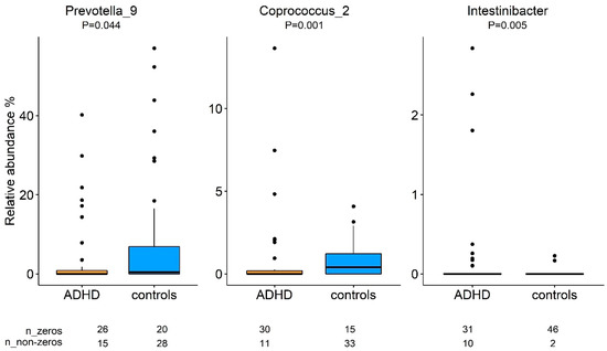 - Jiang, H.-Y.; Zhou, Y.-Y.; Zhou, G.-L.; Li, Y.-C.; Yuan, J.; Li, X.-H.; Ruan, B. Gut microbiota profiles in treatment-naïve children with attention deficit hyperactivity disorder. Behav. Brain Res. 2018, 347, 408–413. [Google Scholar] [CrossRef] [PubMed]