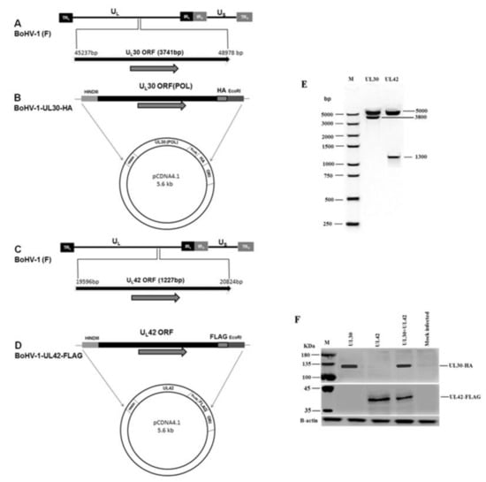 3.1. Construction and Characterization of BoHV-1 UL30-HA and UL42-FLAG Expression Plasmids