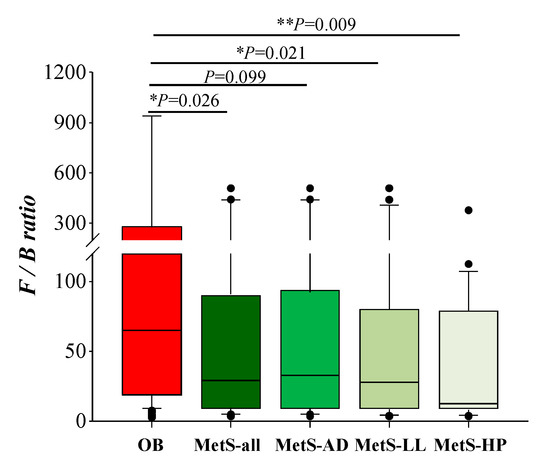 3.4. Firmicutes to Bacteroidetes ratio (F/B) in OB and MetS Patients