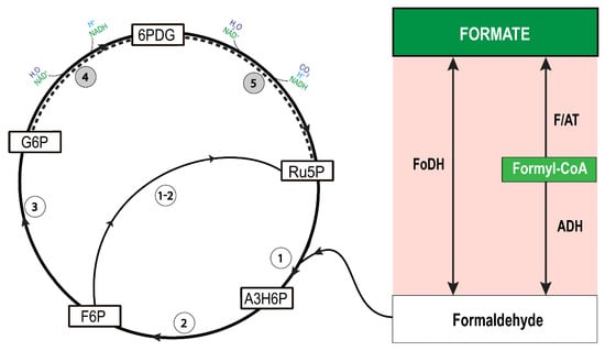 Metabolisation of formate can occur during acetogenesis [], methanogenesis [], and molecular hydrogen (H2) production []. Moreover, formate can provide cells with both a carbon source and reducing power. It delivers a significant contribution to anaerobic syntrophic associations, as formate is transferred as redox currency between the organisms []. According to a search using the PubChem Substance and Compound Databases [], there are 189 biological systems that include formate as a reaction component. This shows the significance of formate in functioning of biological systems. Therefore, formate assimilation pathways and studying how microorganisms with different physiologies can convert formate into specific metabolites are increasingly attracting attention.
