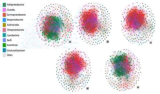 - Barberán, A.; Bates, S.T.; Casamayor, E.O.; Fierer, N. Using network analysis to explore co-occurrence patterns in soil microbial communities. ISME J. 2012, 6, 343–351. [Google Scholar] [CrossRef]