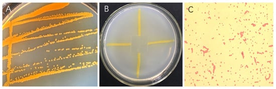 Morphological identification: colony morphology (A), oxygen demand test results (B), and Gram staining (C) of Pseudomonas sp. ST–TJ4.