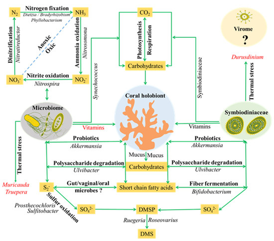 - Rädecker, N.; Pogoreutz, C.; Voolstra, C.R.; Wiedenmann, J.; Wild, C. Nitrogen cycling in corals: The key to understanding holobiont functioning? Trends Microbiol. 2015, 23, 490–497. [Google Scholar] [CrossRef]
