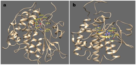 - Morris, G.M.; Huey, R.; Lindstrom, W.; Sanner, M.F.; Belew, R.K.; Goodsell, D.S.; Olson, A.J. Autodock4 and AutoDockTools4: Automated docking with selective receptor flexibility. J. Comput. Chem. 2009, 16, 2785–2791. [Google Scholar] [CrossRef] [PubMed]