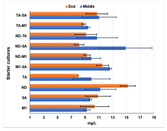 - Cheraiti, N.; Guezenec, S.; Salmon, J.M. Redox interactions between Saccharomyces cerevisiae and Saccharomyces uvarum in mixed culture under enological conditions. Appl. Environ. Microbiol. 2005, 71, 255–260. [Google Scholar] [CrossRef]