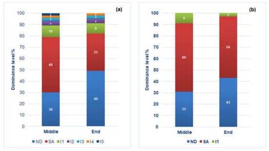 - in two mixed fermentations (ND-SA and ND-TA), the two strains were present, with a percentage very similar between them;