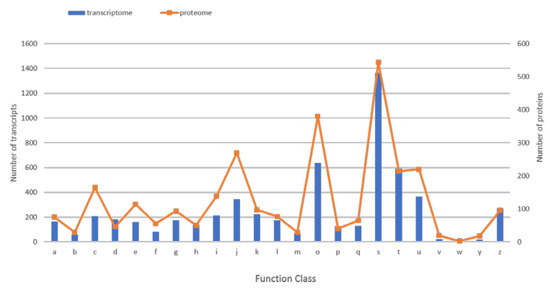 To further analyze the function of the transcripts and proteins, we conducted a comparison of the latter with the COG database (Figure 3).