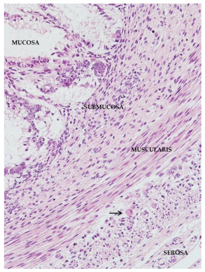 We briefly reviewed the anatomical organization of the intestinal wall to better understand better our results and explain potential CMV involvement in the pathogenesis of HB.