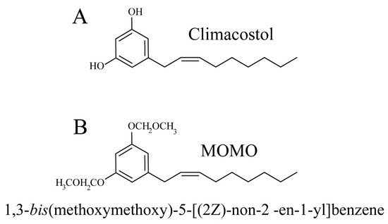 Molecular structures of (A) climacostol, and (B) MOMO.
