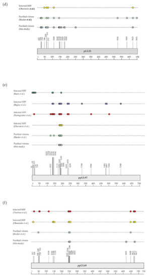 - Büscher, N.; Paulus, C.; Nevels, M.; Tenzer, S.; Plachter, B. The proteome of human cytomegalovirus virions and dense bodies is conserved across different strains. Med. Microbiol. Immunol. 2015, 204, 285–293. [Google Scholar] [CrossRef]