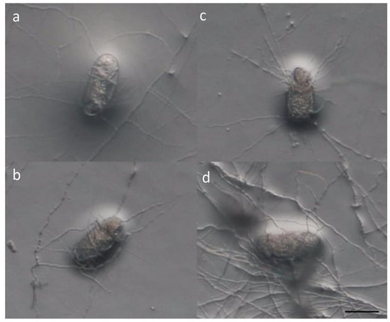 - Lopez-Llorca, L.V.; Maciá-Vicente, J.G.; Jansson, H.B. Mode of action and interactions of nematophagous fungi. In Integrated Management of Plant Pests and Diseases; Ciancio, A., Mukerji, K.G., Eds.; Springer: Dordrecht, The Netherlands, 2008; Volume 2, pp. 51–76. [Google Scholar]