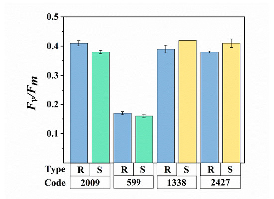 Comparison of the photosynthetic activity (Fv/Fm) between external-layer-retaining and stripped samples of Nostoc and Microcystis. R and S are the abbreviations for external-layer-retaining and stripped samples, respectively. Data are means ± SEs (n = 3).
