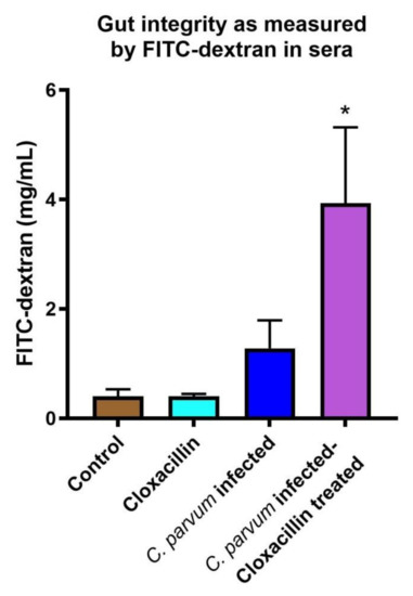 3.2. Gut Permeability Is Increased in Infected Mice