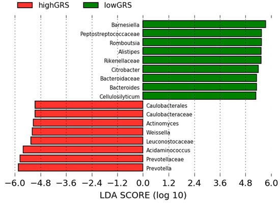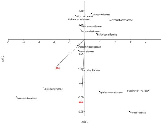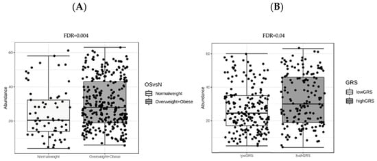 3.3. Relationship between BMI, GRS and Gut Microbiome.