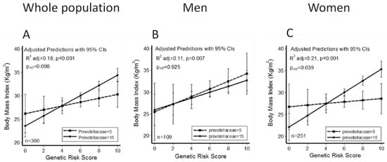 Cuevas-Sierra, A.; Riezu-Boj, J.I.; Guruceaga, E.; Milagro, F.I.; Martínez, J.A. Sex-Specific Associations between Gut Prevotellaceae and Host Genetics on Adiposity. Microorganisms 2020, 8, 938. https://doi.org/10.3390/microorganisms8060938