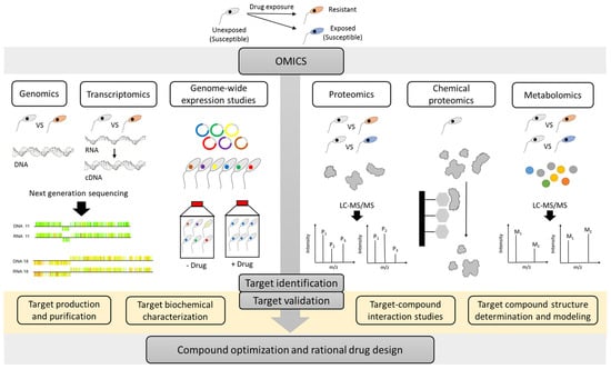 As described in several reviews [18,19,22], multiple strategies can be used to identify the MoA of compounds. The present review specifically focuses on the different ‘omics’ approaches which in recent years have emerged as valuable techniques to evaluate the MoA and MoR of anti-kinetoplastid compounds (Figure 1).