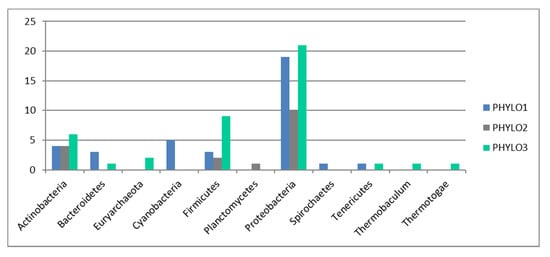 At the phylogenetic level, network analysis using weighted gene co-occurrence analysis (WGCNA) showed only three distinct modules within the genes included in the microarray, suggesting that the functional groupings found also did not correspond to species or taxonomic units. The three phylogenetic modules (PHYLO1, PHYLO2 and PHYLO3) include representatives of all main groups expected from marine samples, including Proteobacteria, Actinobacteria and Bacteriodetes, together with Firmicutes, at different proportions (Figure 4).