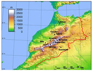 Natural barriers like high mountains play an important role for limiting dispersal and isolating populations. The Atlas, a natural barrier, may have played a role in limiting the diffusion of zoonotic cutaneous leishmaniasis to the Saharan regions of Morocco. This Atlas consists of three parallel ranges: the Anti-Atlas in the southwest, which gives way to the High Atlas, where the country’s highest peak rises to 4165 m; the Middle Atlas is located northeast of the High Atlas. Rolling plateaus east of the mountains gradually lead into the Sahara, located in southeastern and southern Morocco. Here, in sub-Saharan areas, L. major is largely widespread. The central Moroccan plateaus overlooking the northern slope of the High Atlas, notably the Haouz plain and Chichaoua, remain non-endemic but, according to entomological data, is considered high risk.