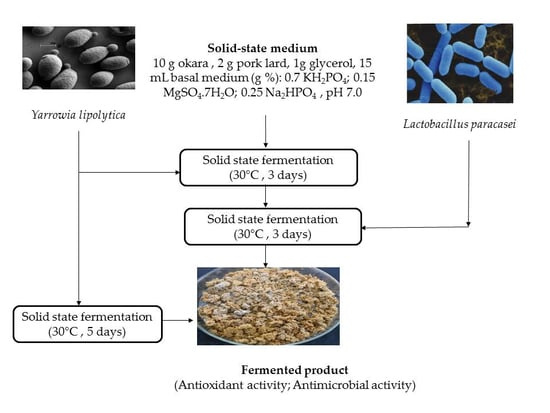 - Guan, Y.; Wang, J.; Wu, J.; Wang, L.; Rui, X.; Xing, G.; Dong, M. Enhancing the functional properties of soymilk residues (okara) by solid-state fermentation with Actinomucor elegans. CyTA J. Food 2016, 15, 155–163. [Google Scholar] [CrossRef][Green Version]