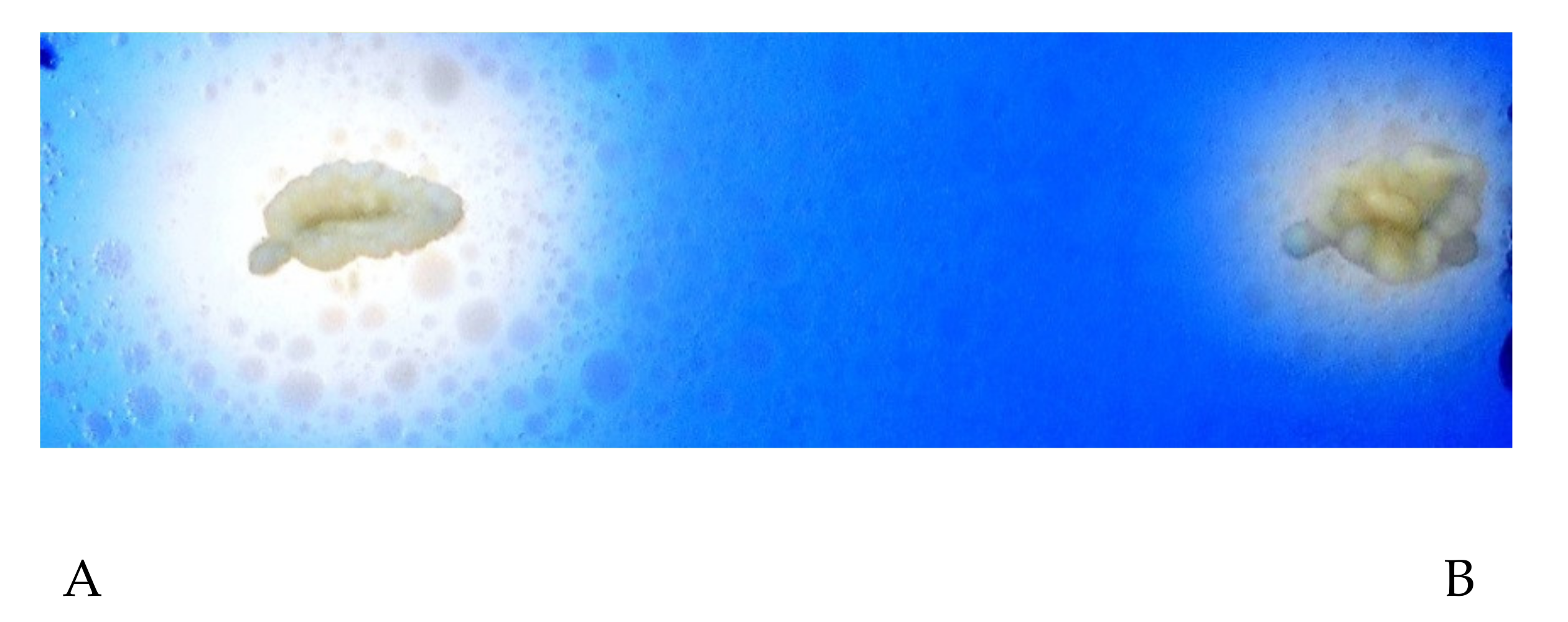 2.2. Selection of the Yeast Strains as Lipase and Protease Producers