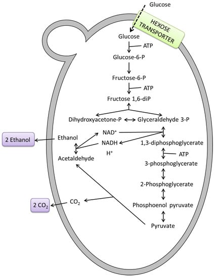 Fermentation is a well-known natural process used by humanity for thousands of years with the fundamental purpose of making alcoholic beverages, as well as bread and by-products. Upon a strictly biochemical point of view, fermentation is a process of central metabolism in which an organism converts a carbohydrate, such as starch or sugar, into an alcohol or an acid. For example, yeast performs fermentation to obtain energy by converting sugar into alcohol. Fermentation processes were spontaneously carried out before the biochemical process was fully understood. In the 1850s and 1860s, the French chemist and microbiologist Louis Pasteur became the first scientist to study fermentation, when he demonstrated that this process was performed by living cells. Fermentation processes to produce wines, beers and ciders are traditionally carried out with Saccharomyces cerevisiae strains, the most common and commercially available yeast. They are well known for their fermentative behavior and technological characteristics which allow obtaining products of uniform and standard quality. Many other important industrial products are the result of fermentation, such as yogurt, cheese, bread, coffee. Yeasts also play a key role in wastewater treatment or biofuel production. Upon a biochemical point of view, fermentation is carried out by yeasts (and some bacteria) when pyruvate generated from glucose metabolism is broken into ethanol and carbon dioxide (Figure 1).