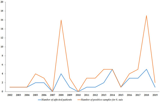 Secular trends of the isolation of S. suis in Hungary (2002–2019).