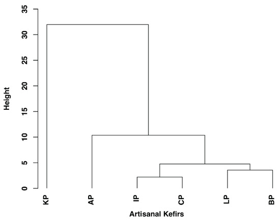 A research project that focused on the microbial diversity of Tibetan kefir grains from different origins did not detect Lac. lactis in kefir grains examined but in kefir products [56,57]. Another published study found that Lac. lactis and S. thermophilus were dominant microorganisms accounting for 53–65% of the total microflora of Tibetan kefir grains and accounting for 74–86% of the total microflora of kefir products [58]. The artisanal kefirs tested in our work exhibit very low relative abundance for these organisms and thus they do not resemble the Tibetan kefir with dominant Lac. lactis and S. thermophilus. The variation in bacterial distribution in kefir products versus their grains can be attributed to temperature increase created by active fermentation or where these bacteria exist in the kefir grain [4] among other factors.