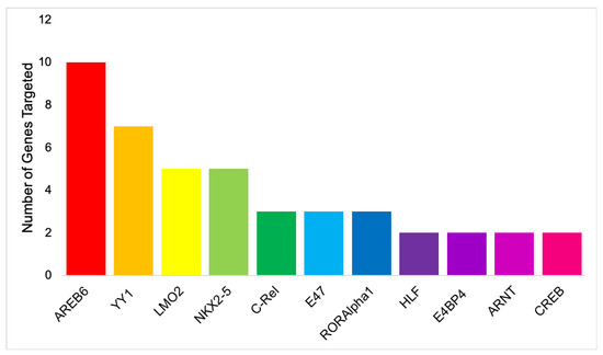 Bar chart illustrating the number of genes identified as targets for each transcription factor.