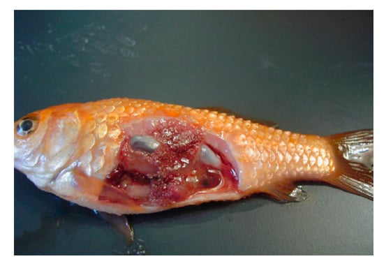 - Novotny, L.; Halouzka, R.; Matlova, L.; Vavra, O.; Bartosova, L.; Slany, M.; Pavlik, I. Morphology and distribution of granulomatous inflammation in freshwater ornamental fish infected with mycobacteria. J. Fish Dis. 2010, 33, 947–955. [Google Scholar] [CrossRef] [PubMed]