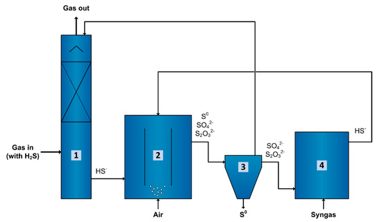 - De Rink, R.; Klok, J.B.M.; Van Heeringen, G.J.; Sorokin, D.Y.; Ter Heijne, A.; Zeijlmaker, R.; Mos, Y.M.; de Wilde, V.; Keesman, K.J.; Buisman, C.J.N. Increasing the selectivity for sulfur formation in biological gas desulfurization. Environ. Sci. Technol. 2019, 53, 4519–4527. [Google Scholar] [CrossRef] [PubMed]