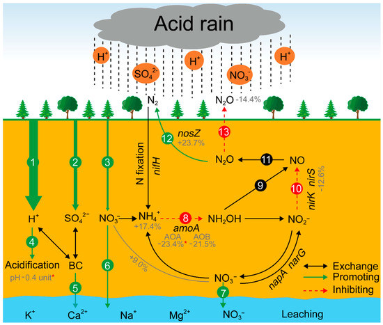 - Xu, H.; Zhang, J.; Ouyang, Y.; Lin, L.; Quan, G.; Zhao, B.; Yu, J. Effects of simulated acid rain on microbial characteristics in a lateritic red soil. Environ. Sci. Pollut. R. 2015, 22, 18260–18266. [Google Scholar] [CrossRef]