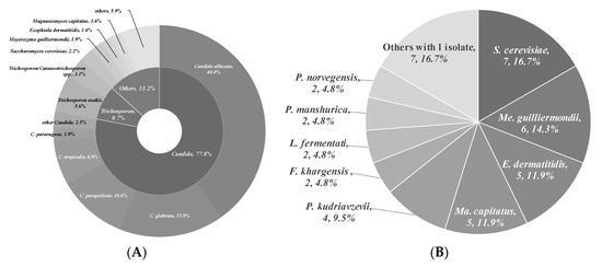 - Yang, Y.; Leaw, S.; Wang, A.; Chen, H.; Cheng, W.; Lo, H. Characterization of yeasts colonizing in healthy individuals. Med. Mycol. 2011, 49, 103–106. [Google Scholar] [CrossRef][Green Version]