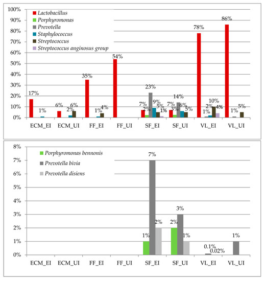 - Jakobsson, T.; Forsum, U. Lactobacillus iners: A marker of changes in the vaginal flora? J. Clin. Microbiol. 2007, 45, 3145. [Google Scholar] [CrossRef]